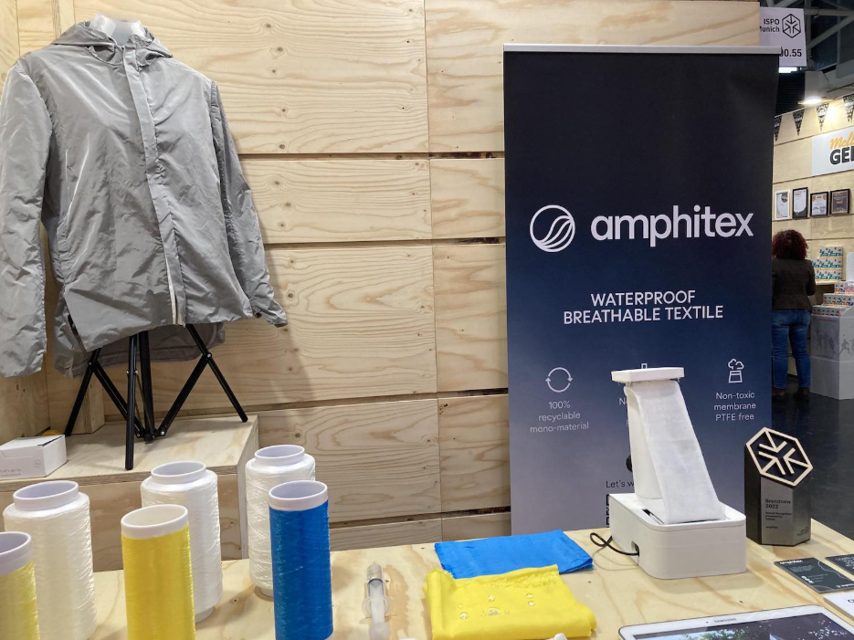 New recycled, circular, and bio-based material technologies presented at ISPO Munich include a recyclable waterproof textile engineered to deliver performance without chemical coatings.